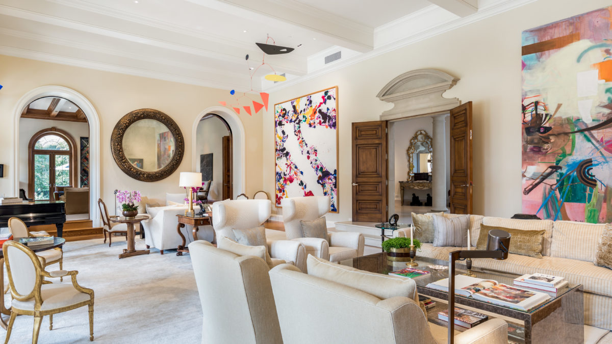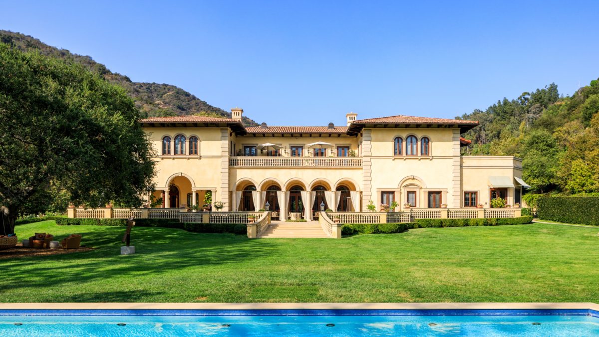 The home is built to entertain, reflecting grandiose throughout with high ceilings, curved arches, and manicured gardens surrounding the grounds, pool, and pool house. In addition, the motor court can easily fit 10 vehicles.
