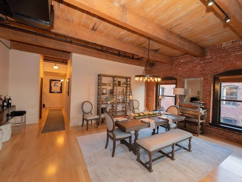 “This … corner penthouse loft plus 340 sq. ft. private roof deck is both a comfortable family home as well as a great place for grand scale entertaining,” the listing on Zillow.com reads. “The custom built kitchen with milled antique fir carpentry, industrial hood, Restaurant-grade stainless Viking Stove with Dual Ovens, third Stainless Miele Oven, and Subzero Fridge must be seen. …”