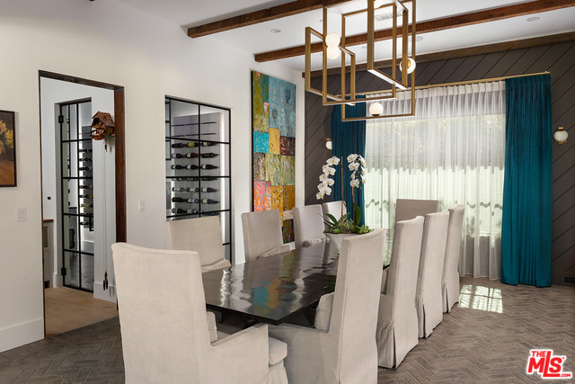The ranch-style mansion offers over 9,800 sq ft of living space set on a 0.54-acre lot. The property, custom built-in 2018, features eight bedrooms, nine full baths, and two half bathrooms. It includes a gourmet kitchen, formal living and dining rooms, and a master suite with a fireplace and private patio. In addition to all of this, the one-of-a-kind home has a two-level guest house containing two private bathrooms and a full kitchen to spoil visiting friends and family.