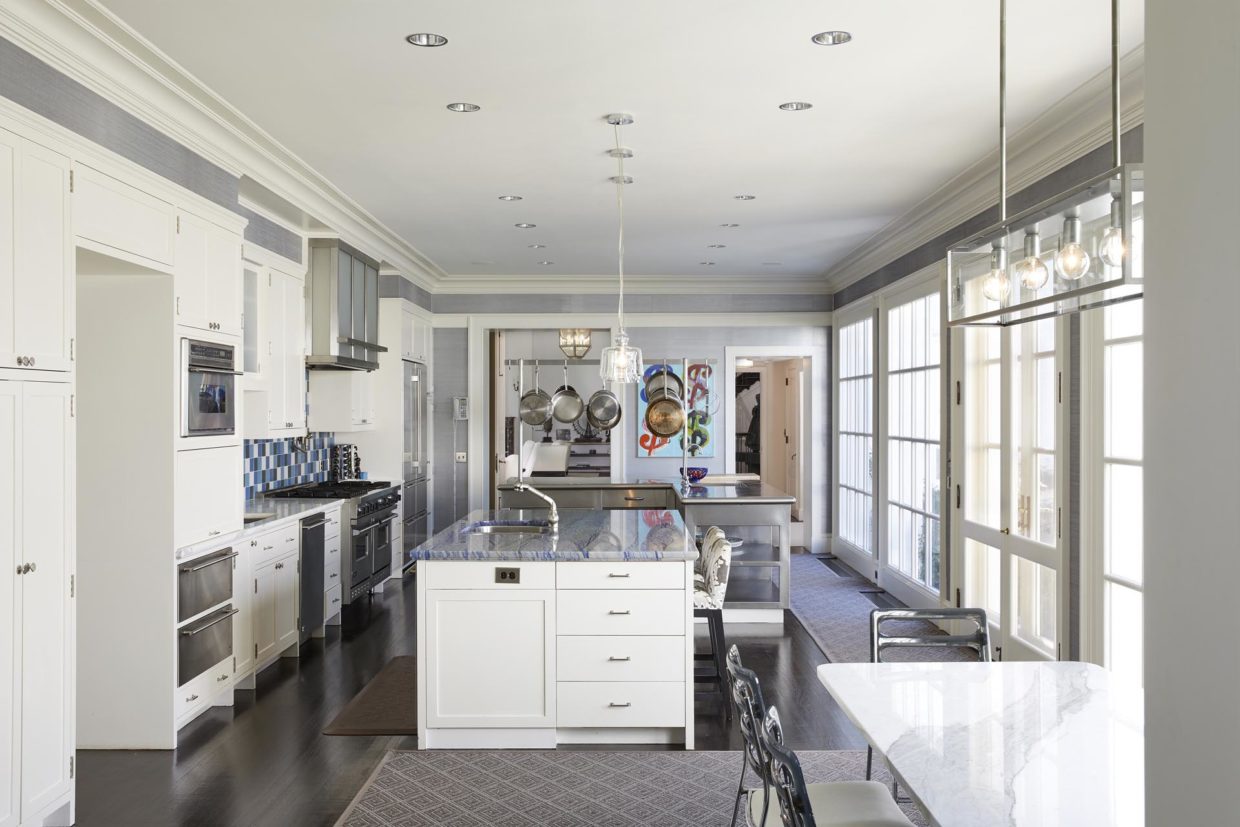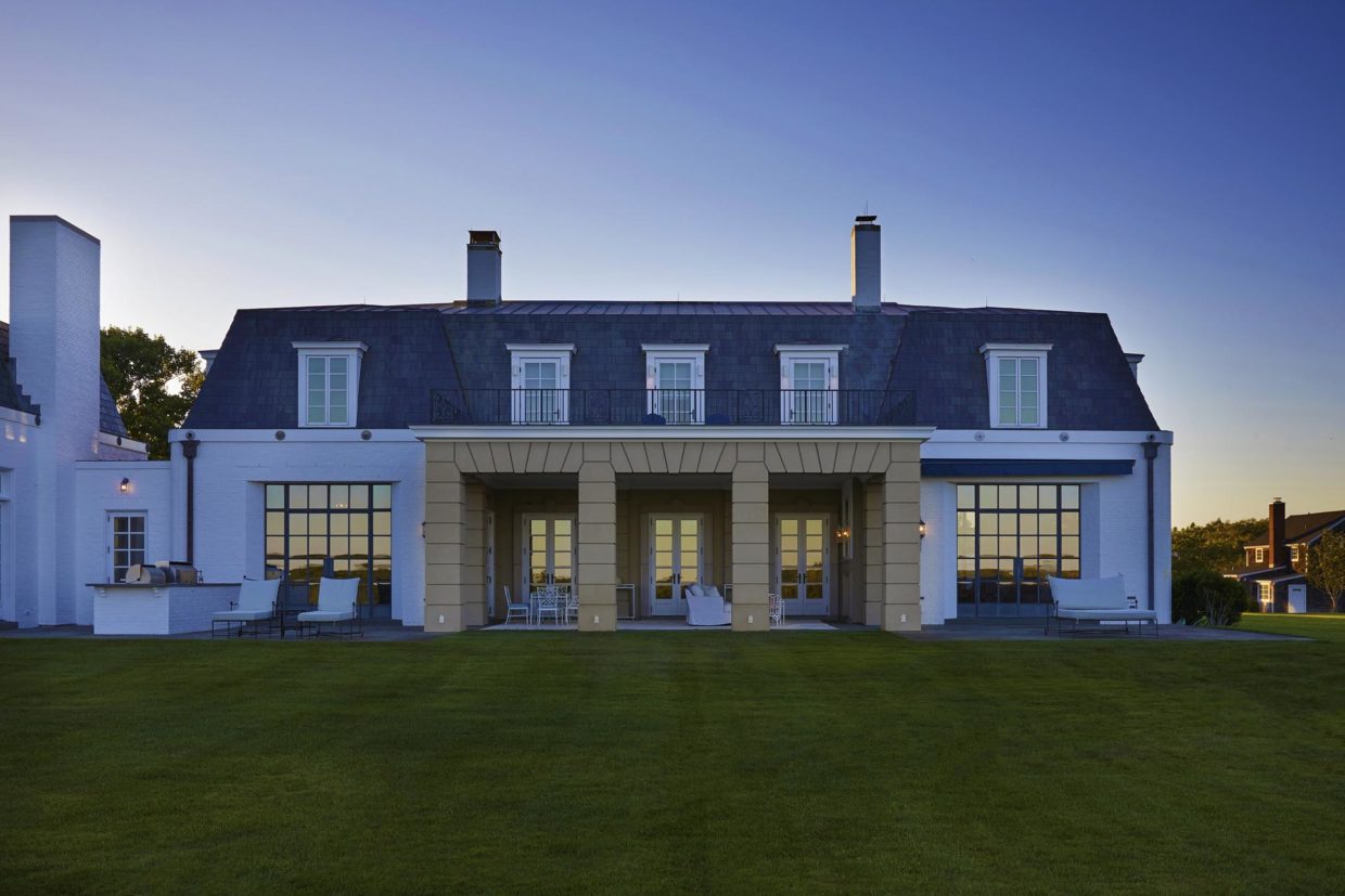 The property occupies 42.13 acres that include nearly 1,300 feet of private beach, 3 ponds, and bay frontage. The multi-section main house features a stucco exterior, a gambrel roof shape and casement dormer windows. The interior measures 19,938 sq. ft. and features multiple sets of French doors, hardwood paneling, Italian marble fireplaces, and inlaid oak floors imported from European mansions. There are twelve bedrooms and twelve baths and amenities include: a 20x28-foot chef’s kitchen, a library, guest rooms, game room, and a pair of master suites. Other highlights include: original ceilings with moldings and chandeliers and antique bathroom fixtures, the original greenhouse where the Fords grew their own fruits and vegetables, heated 60-foot pool with an outdoor kitchen, spa, gym with sauna, outdoor shower, koi garden with waterfall, a meditation garden, a tree lined driveway behind a gated entrance, a tennis and a basketball court, three-bedroom carriage house, and a detached six-car garage facing staff quarters.