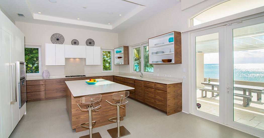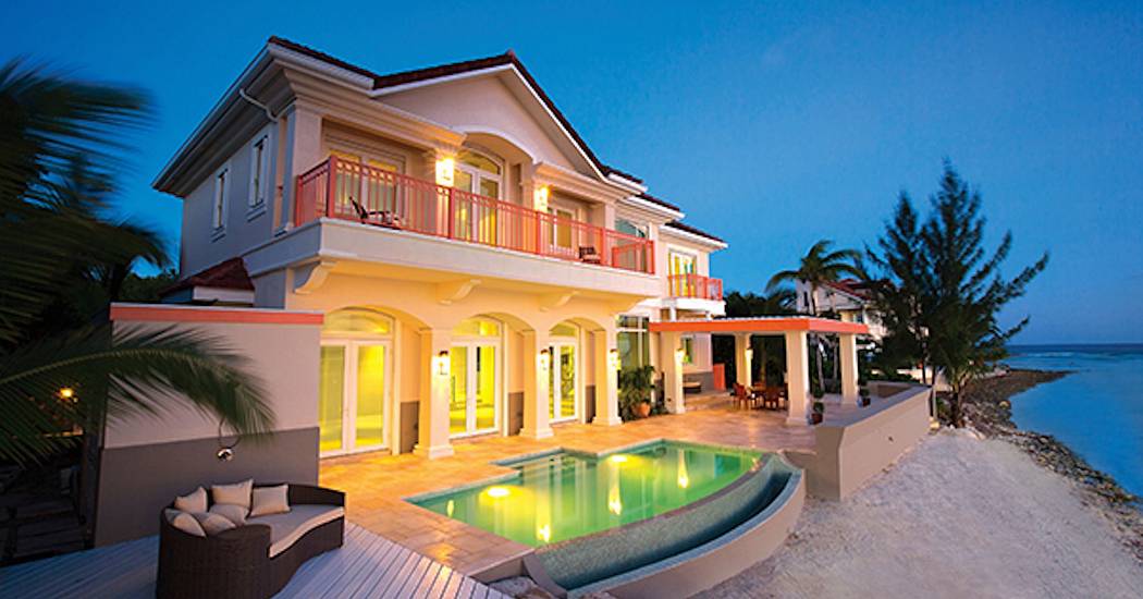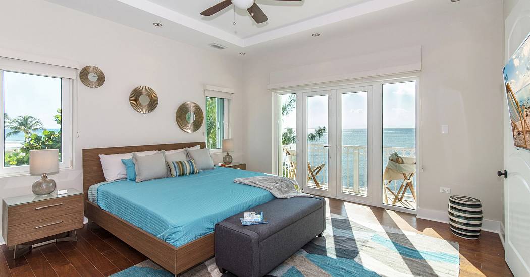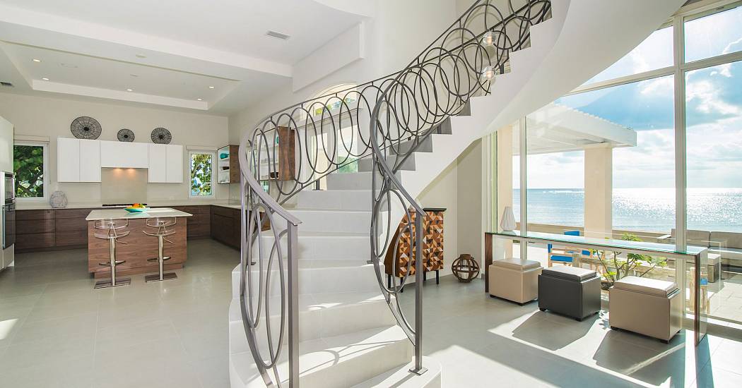 Sugar Reef is located at Old Prospect Point, one of the most coveted addresses in the Cayman Islands, on a quiet residential road with plenty of vegetation and flowers. The private two-story property was recently renovated into a contemporary beachfront villa. It provides stunning views of the reef-protected beach and South Sound's bay.