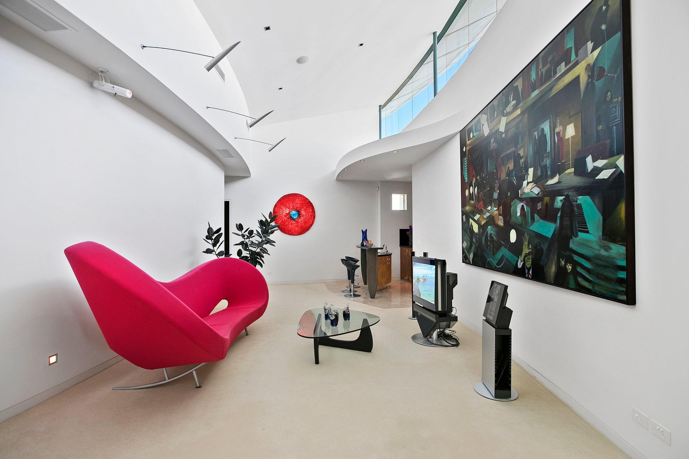 The luxurious master suite takes advantage of the home's surroundings and provides astonishing ocean views. It also includes a custom-made rotating bed and a walk-in shoe closet!