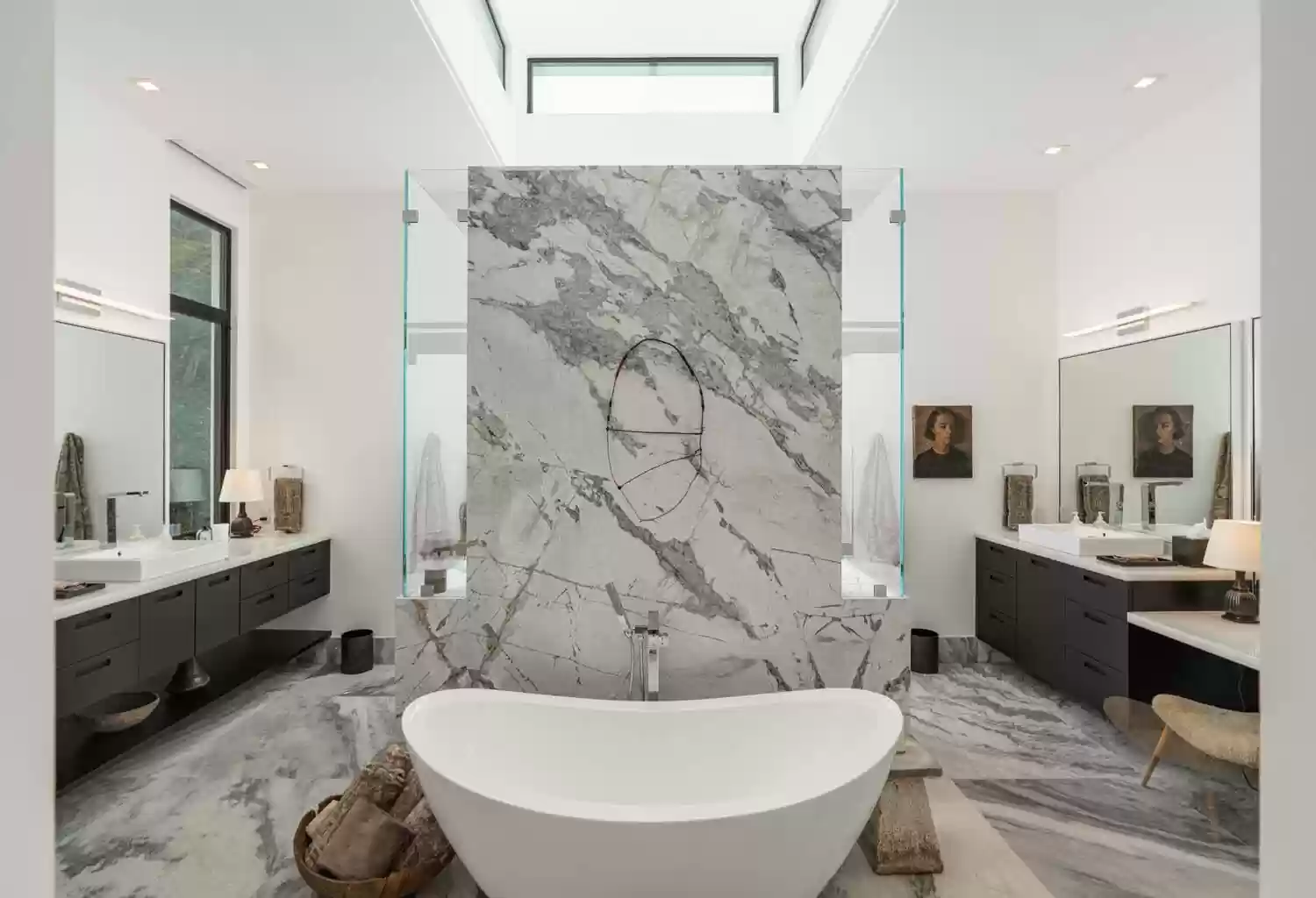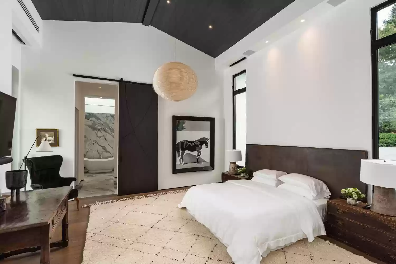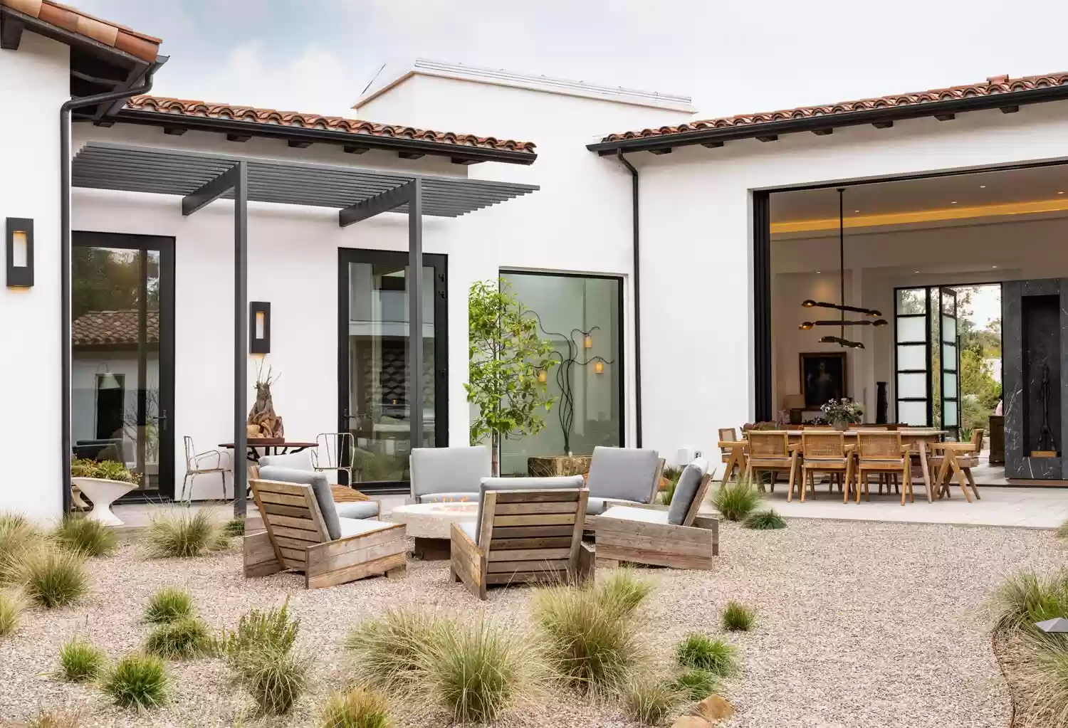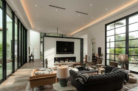 This chic home is a beauty to behold. Built in 2018, it offers 4,780 sq. ft. of perfectly blended modernity and style. With high ceilings, an open floor plan, and seamless flow between inside and out, this house effortlessly embraces its own spaciousness. Outside you can enjoy a fire pit, a private garden with fountains and botanicals, and an overstuffed studio that you can adapt for use in entertaining, fitness, work, or whatever else might best suit your needs. The public rooms inside are centrally located and branch off into bedroom wings on both sides, allowing for both convenience and privacy. The primary suite contains dual closets and a beautiful bath with a second al fresco shower. The house is move-in-ready so the best of Montecito can be enjoyed without wait.