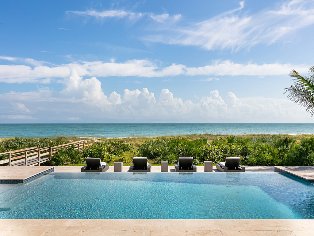 This stunning oceanfront estate in Vero Beach, Florida is now listed for $20,000,000. The property covers 2.23 acres with 8,373 sq. ft. of living space with 5 bedrooms and 9 total baths, built in 2017. The interior is bright and sleek, offering views of the idyllic ocean from the comfort of its luxurious interior, its gorgeous covered porch and patio, and from the waters of its infinity pool with a spa. It features two floors. On the first is its impressive kitchen, first floor primary bedroom, and office, with designer finishes. An elevator ascends to the second floor's guest suites and oceanfront veranda. Along with the pool, outside there is also a summer kitchen, a dune crossover with 100ft of beachfront, and a gated driveway.