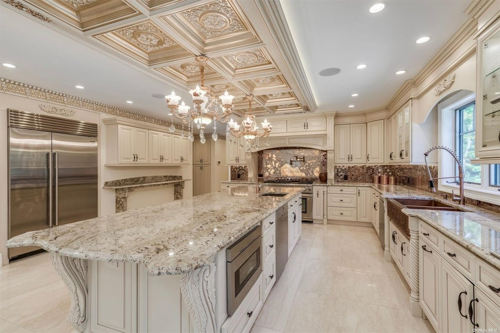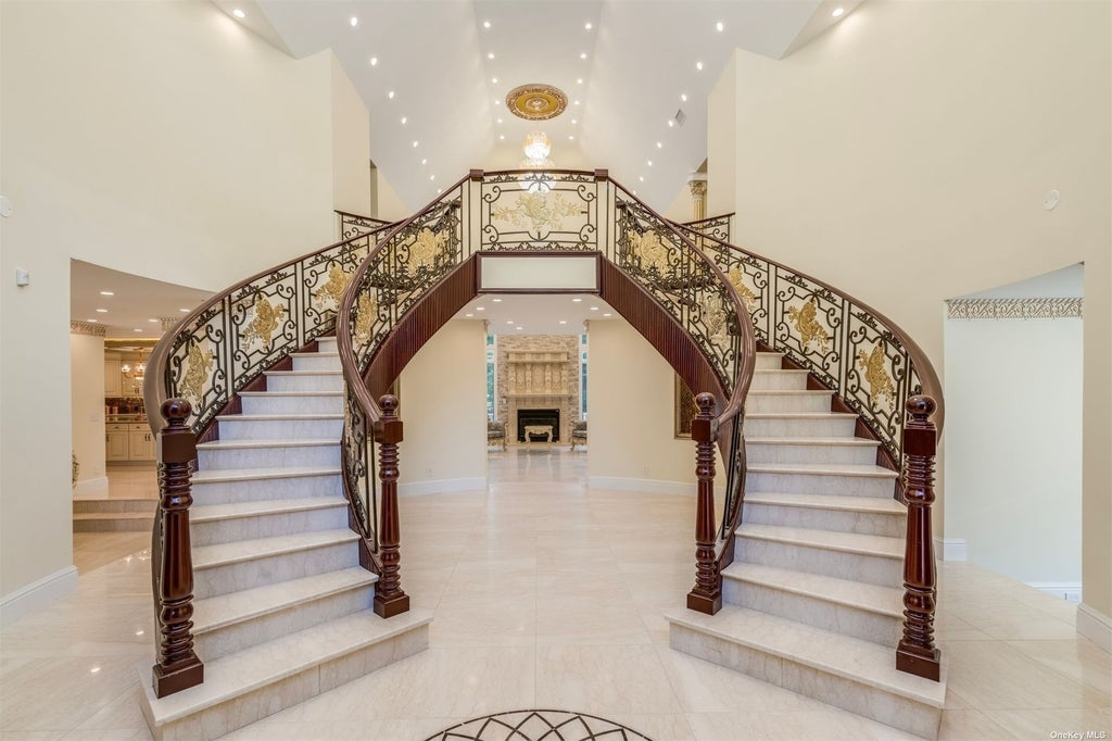 This 8 bedroom, 8 full bath, 4 half bath home offers 8,000 sq. ft. of gorgeous living space on 2 acres of forested land. Currently listed at $7,777,000, 2 Brook Lane is a new construction characterized by its true elegance and modernity. The gleaming bright interior with golden accents gives this home a cohesive and palpable sense of majesty. Take in its sparkling K9 crystal chandeliers, richly carved stone fireplace mantels, and custom moldings and finishes. It's also a true smart home with elevator access to every floor. Below its gourmet chef's kitchen with Brazilian granite countertops and state-of-the-art appliances, its lower level provides an entertainment room with a refreshment kitchen, a private theatre that can seat 15, a room for massages and exercise, and a full indoor saltwater swimming pool with double fountains and a whirlpool for 8. Sprawling about the estate are those 2 acres of lush lawns, specimen trees, and manicured plantings with a perimeter of Leyland cypress. Parking space can be found in the 4-car garage with radiantly designed copper doors. The house also has a Generac generator and a state-of-the-art Vanguard radiant ice melt system.