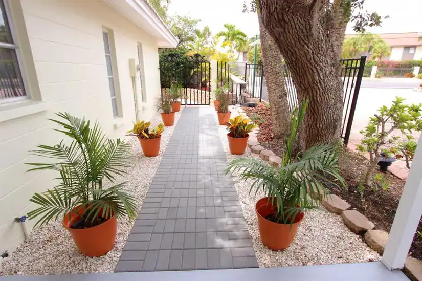 This is a corner lot with its own driveway and carport, many of the units at Polynesian gardens dont have a driveway or a carport. Because this was one of the show units when this complex was built the unit sits 25 feet ahead of the other units next to it, which means when you look out from any side you can see palm trees down the street, other units you can see a brick wall from the unit next door.