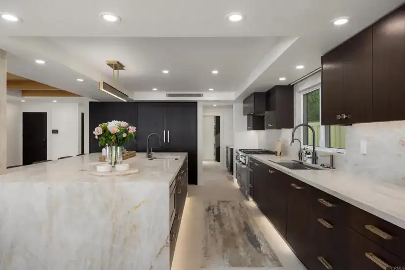 Outside, a series of thoughtful lifestyle amenities elevate beachfront living: a massive outdoor patio with two private outdoor showers, perfect after a surf session or morning walk on the sand; a built-in beachfront bar overlooking the ocean; and an oversized fire pit with integrated seating designed for golden-hour gatherings under the stars. Upstairs, the primary suite is so stunning it has to be seen in person to be believed—a private sanctuary with unobstructed ocean views, refined finishes, and a front-row seat to one of Southern California’s most iconic coastlines. Three additional generous guest suites allow for comfort and privacy for family and friends, while the attached two-car garage offers rare convenience for a true beachfront property. In a market where very few oceanfront homes are truly turnkey, 2016 Ocean Front stands apart. Modern, elegant, and ready to enjoy from day one—this is coastal luxury at its most effortless, set in one of the most coveted pockets of Del Mar’s Beach Colony.
